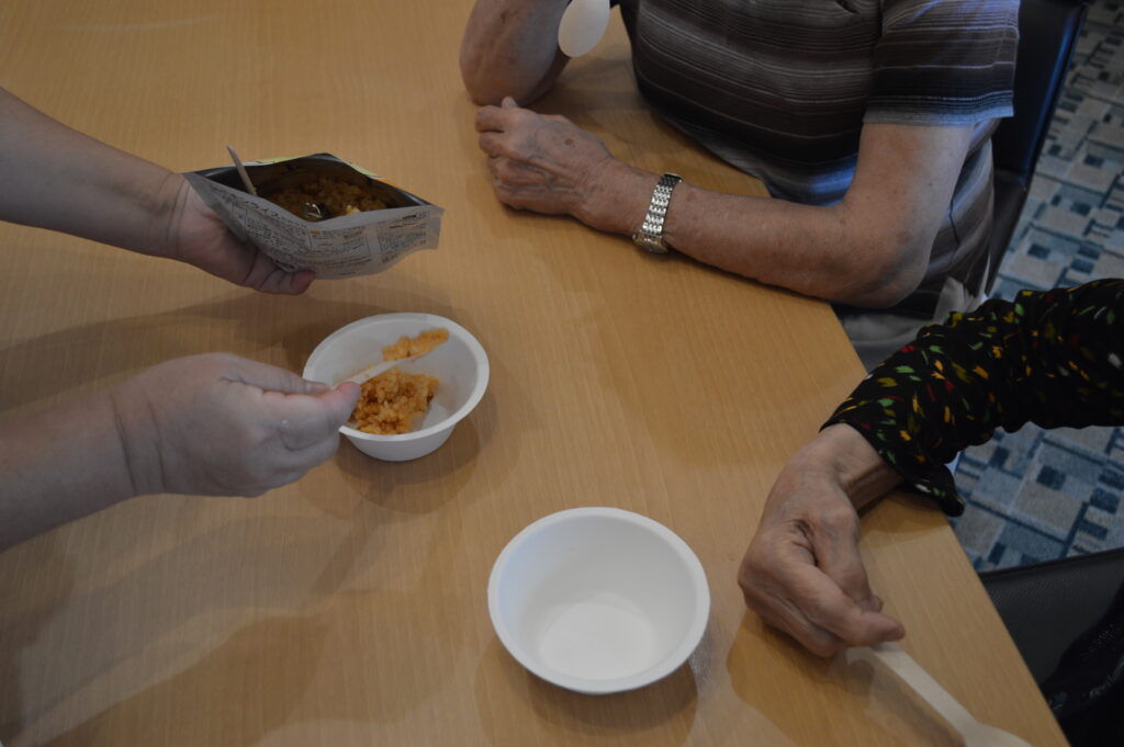 備蓄している非常食(チキンライス)の賞味期限が間近の為、試食会を行いました。